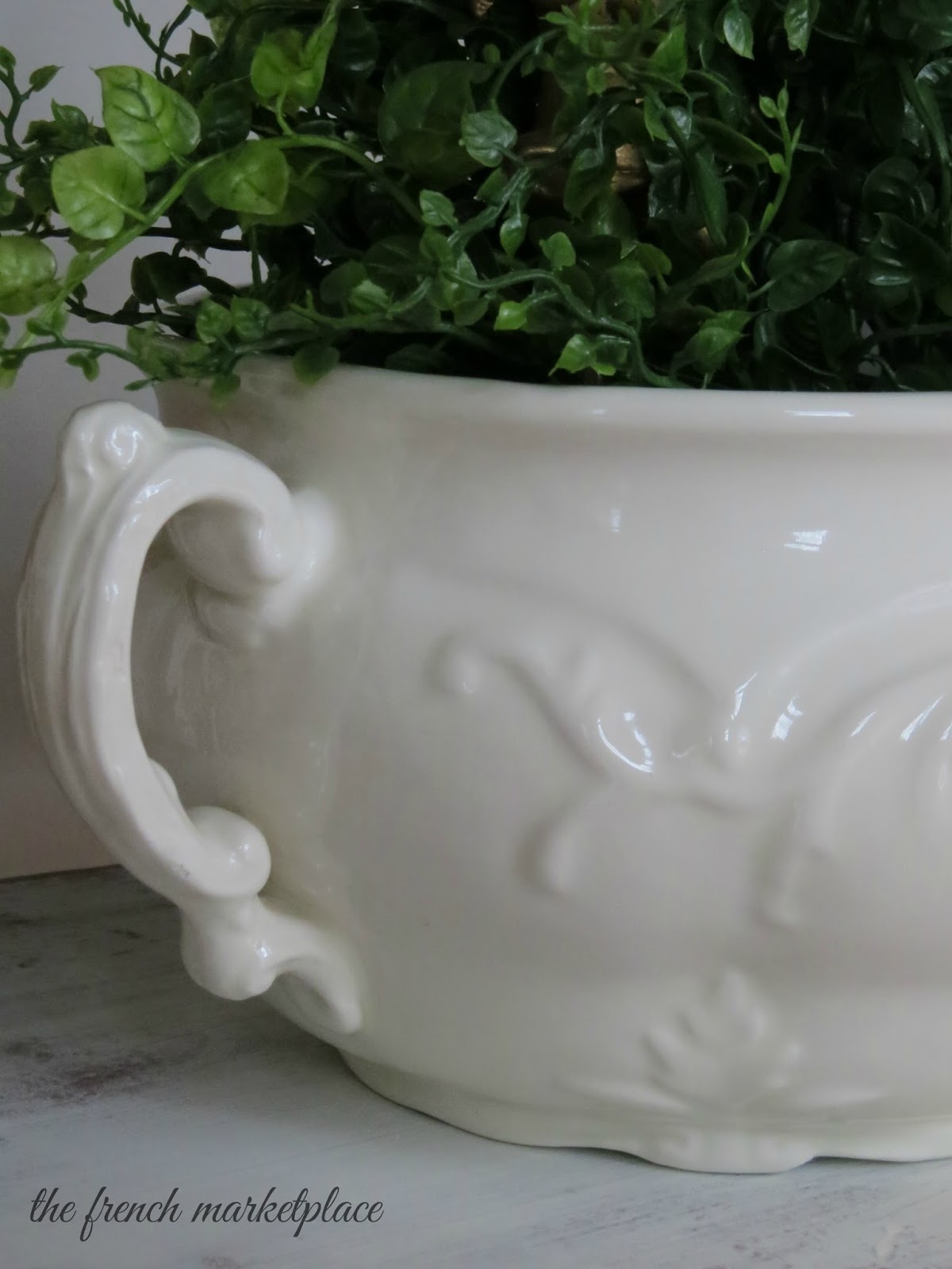 Now I have a wonderful aged finish on the frame and the center is all white.